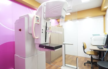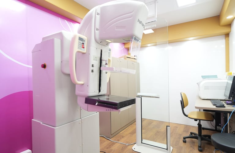 Sala equipada para mamografia com tecnologia de ponta disponível.
